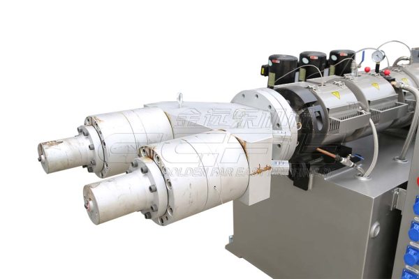 该生产线采用SJZ65/132锥形双螺杆挤出机生产双pvc管材,一出二模头、全套生产线采用先进技术,生产能力高于老式生产线。