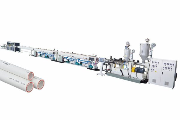 三台单螺杆挤出机,一台用于PPR外层和内层,另一台用于中间层玻纤层。标线共挤出机。