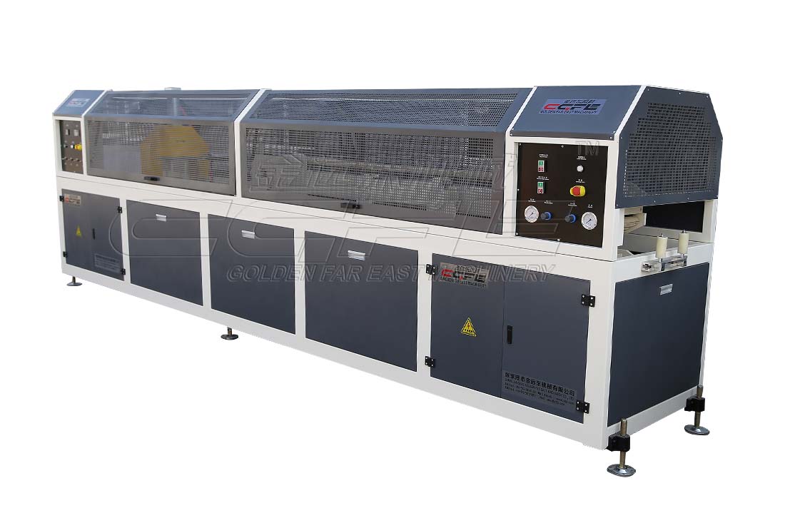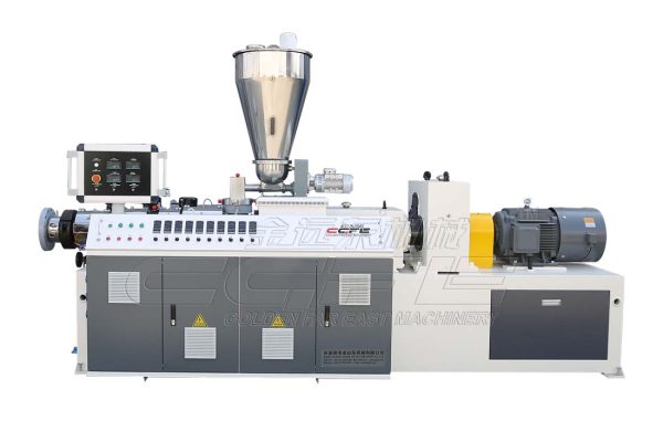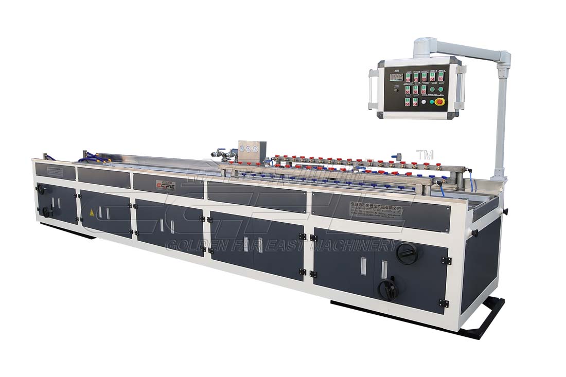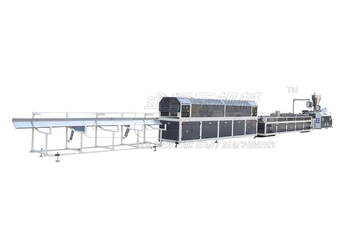 This production line to produce PVC profiles such as: window& door profile, windowsill and so on. Main extruder is conical twin screw extruder.