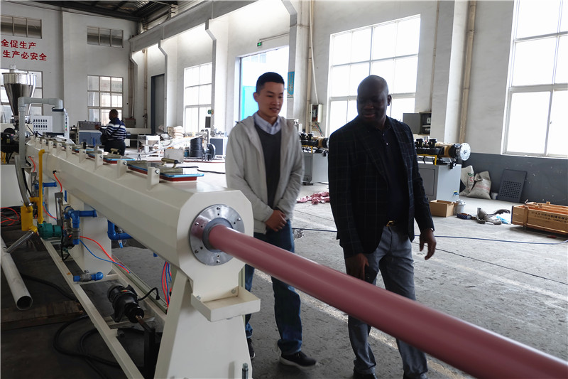 This project is made by customers from Ghana, including 3 sets of PVC pipe production lines, 2 sets of 63 PVC pipe production lines and 1set 110 PVC pipe line. Customers have been selling PVC pipes for many years. In recent two years, Ghana’s pipe market is particularly good. In view of this, customers plan to produce their own pipes to meet the market demand. Because this is the first project of customer, at first, the customer’s plan is more cautious. He wants to invest one production line first, with the pipe diameter from 20 mm to 63 mm. After 3 months of communication with us, the customer plans to visit our factory. After seeing the equipment of our company, the customer is very satisfied. During 3 days of detailed discussion, we understand that the local demand for pipe materials is very large, and the salary of local personnel is not very high, so we suggest that the customer invest in 2 sets production lines, the output will increase greatly after taking cost into account, the profit of customer is still very considerable. After our detailed analysis, the customer felt that it was necessary to invest in another production line. After the decision of him and his partner, they finally invested in three production lines.