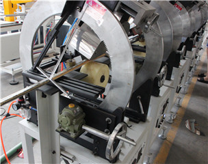 PS foaming profile production line is mainly used to produce profiles from PS foam resin. The profiles are widely used to make photo frame, optical frame, door frame board, skirting board and wood-like molding, etc. The advantages of this production line are as follows: easy foaming, high efficiency and low production cost, etc. The production line has won a high reputation among our customers because of high automation, easy operation, and continuous production stable and reliable.